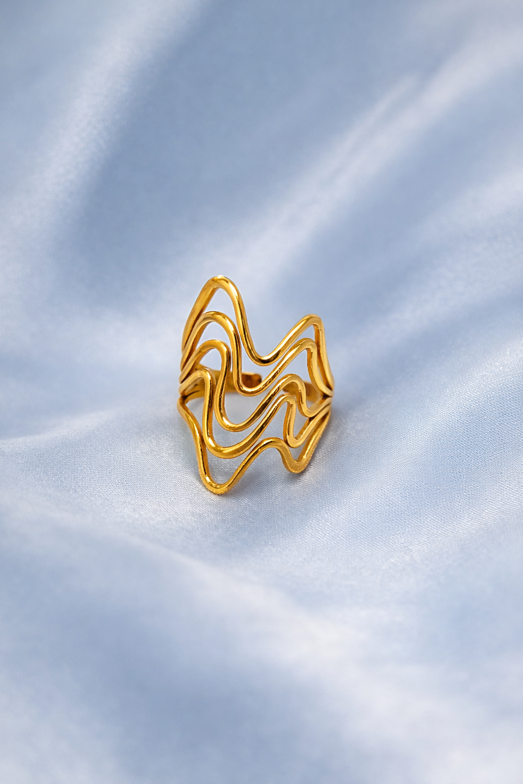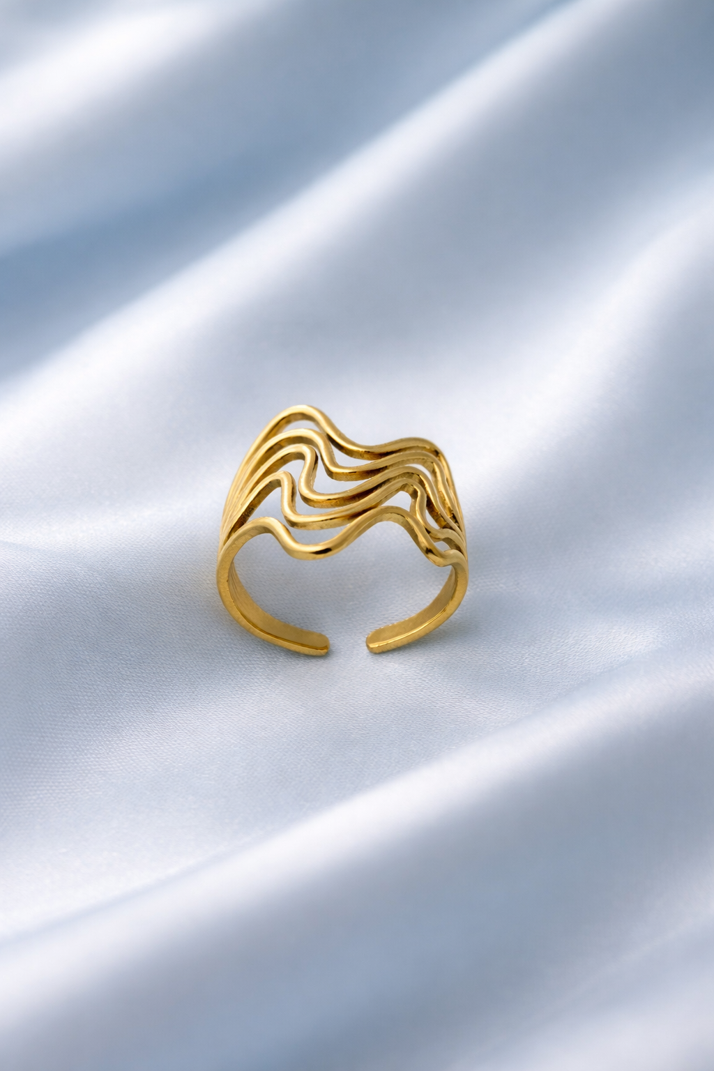 Fluid Wave Design Adjustable Gold Ring