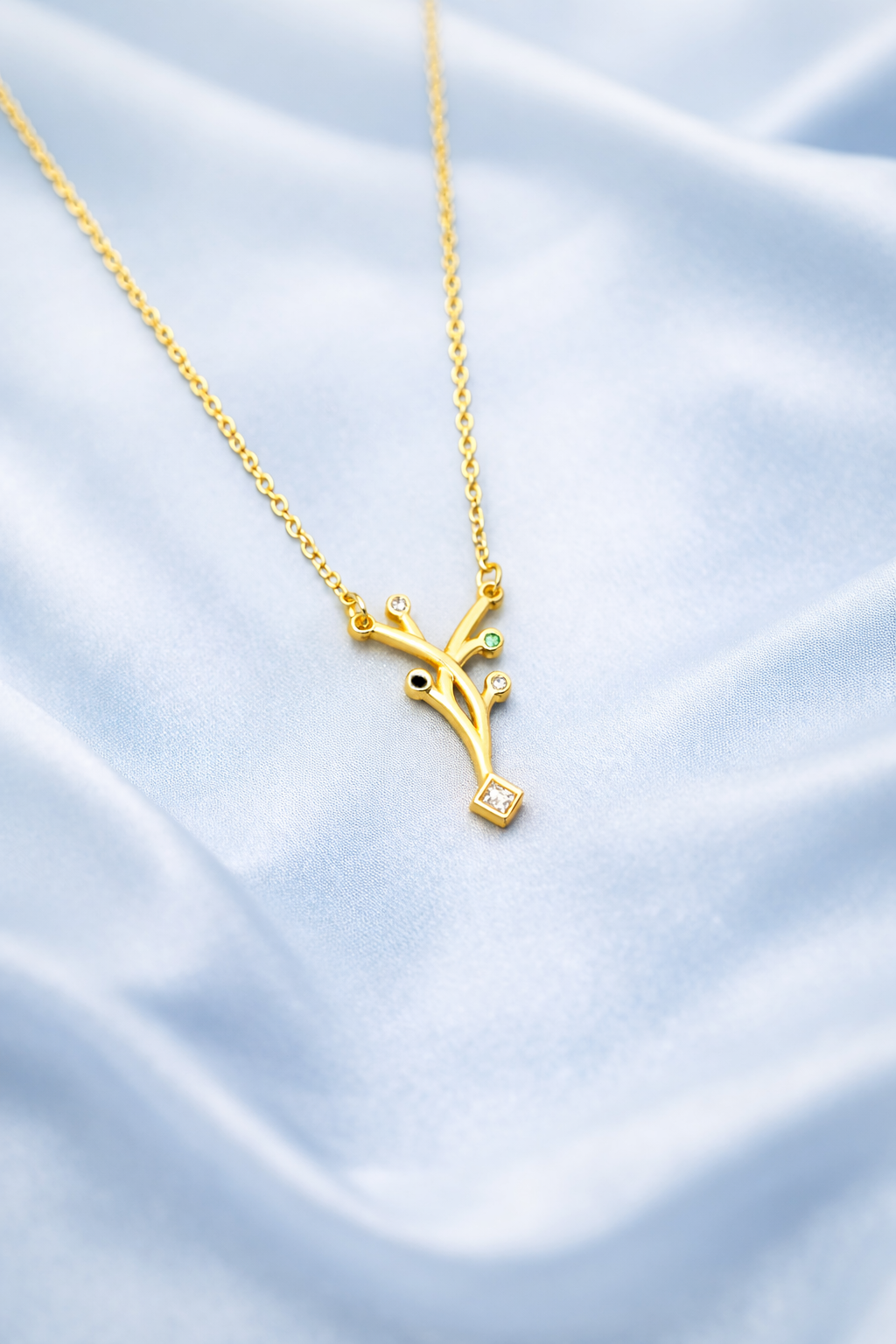 Elegant Branch Necklace with Multicolor Stone